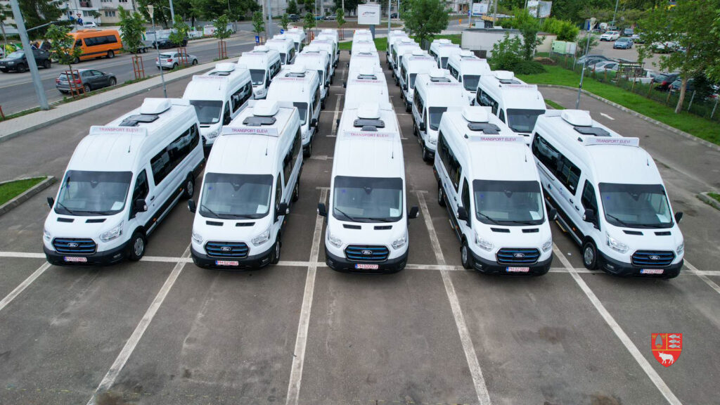 Cele 24 de microbuze electrice destinate transportului elevilor au fost predate oficial primăriilor din comunele beneficiare.