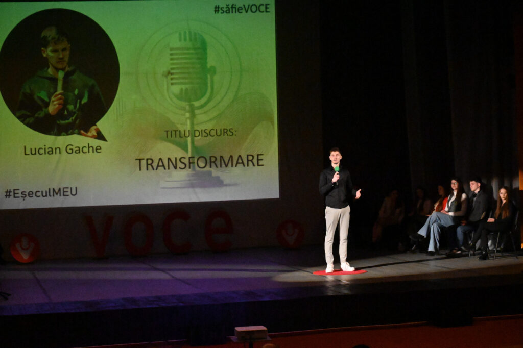 „Cred în importanța acestui eveniment pentru că dacă e să analizăm cea mai mare frică a omenirii este aceea de a vorbi în public. Practic, acești liceeni și-au depășit această frică, cu foarte mult curaj, și ne-au demonstrat că se poate să avem performeri la acest nivel în ceea ce privește un discurs susținut în fața unor spectatori. E îmbucurător să fii aici și să fac parte din juriu, să-i pot evalua și urmări ca pe niște colegi mai mici, fiindcă mă consider un coleg mai mare. Cred că suntem capabili de lucruri mărețe și suntem o generație care poate răsturna orice fel de preconcepție care a fost creată despre județul Vaslui. Avem puterea asta. Cheia e practic în mâinile noastre și aș vrea pe cât de tare vă simțiți voi acasă, pe cât de tare credeți în puterea noastră de a schimba împreună lucrurile să aplaudăm. Putem măsura asta prin aplauze îndelungi”, a spus Denis Hanganu.