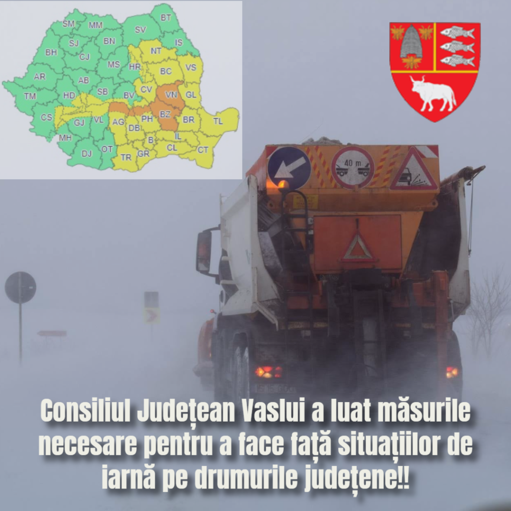 Având în vedere avertizarea meteorologică de vreme severă pentru județul Vaslui, emisă de Administrația Națională de Meteorologie, pentru perioada 27 ianuarie 2023, ora 10.00 – 29 ianuarie 2023, ora 10.00, ce vizează căderi de precipitații și intensificări ale vantului, Consiliul Județean Vaslui recomandă tuturor participanților la trafic să circule cu prudență pe drumurile naționale, județene și comunale.